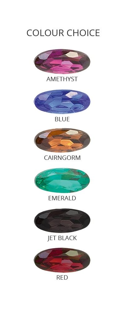 Choose a stone to match a kilt outfit or just pick your favourite colour from these stones - Amethyst, Blue, Cairngorm, Emerald, Jet Black or Red.