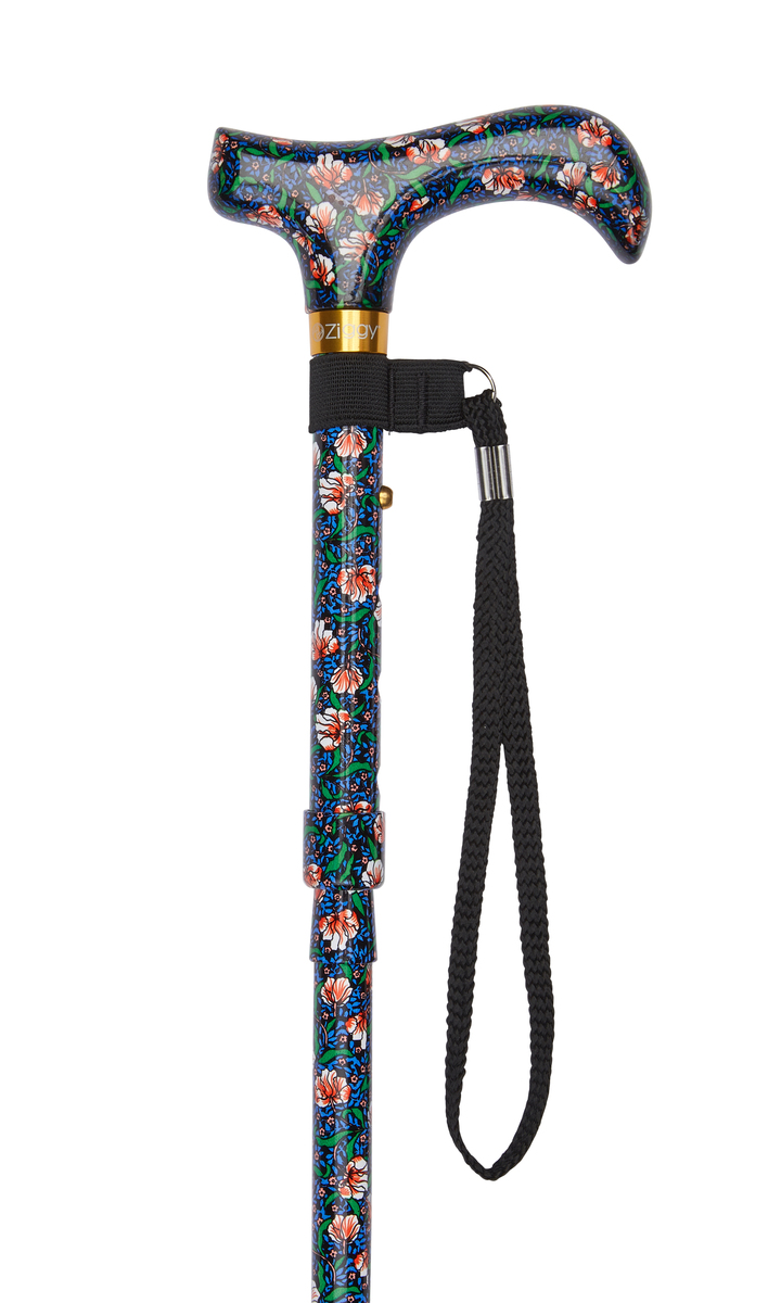 This strong and convenient height adjustable folding walking stick folds into 5 sections, making it small enough to fit into a handbag.
