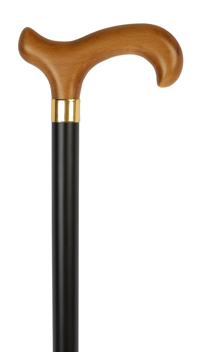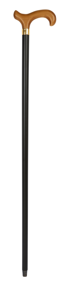 This black-stained beech wooden derby walking stick with a brass collar is very robust and functional. The classic contours allow the stick to be hung over the arm and offers a supportive and comfortable grip.