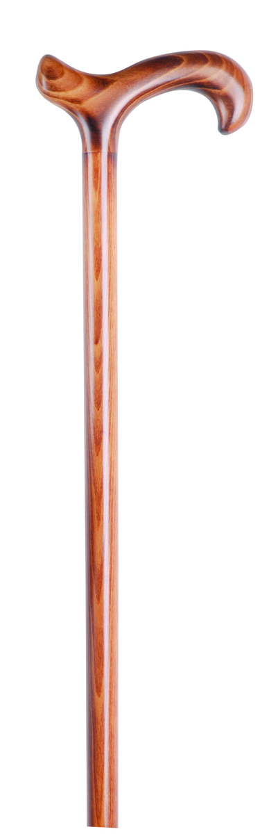 This flame-scorched beech wooden derby walking stick is very robust and functional. The classic contours allow the stick to be hung over the arm and offers a supportive and comfortable grip.