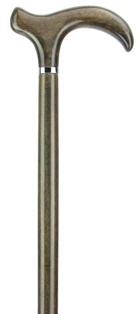 This grey-stained beech wooden derby walking stick with a silver collar is very robust and functional. The classic contours allow the stick to be hung over the arm and offers a supportive and comfortable grip.