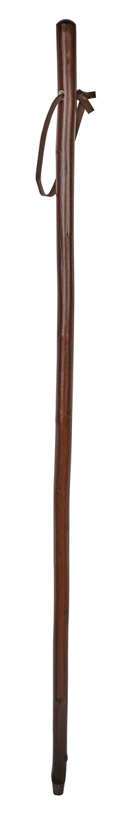 Chestnut hiker with a metal ferrule and a brown leather wrist strap. Rustic wooden staff, ideal for country walks.