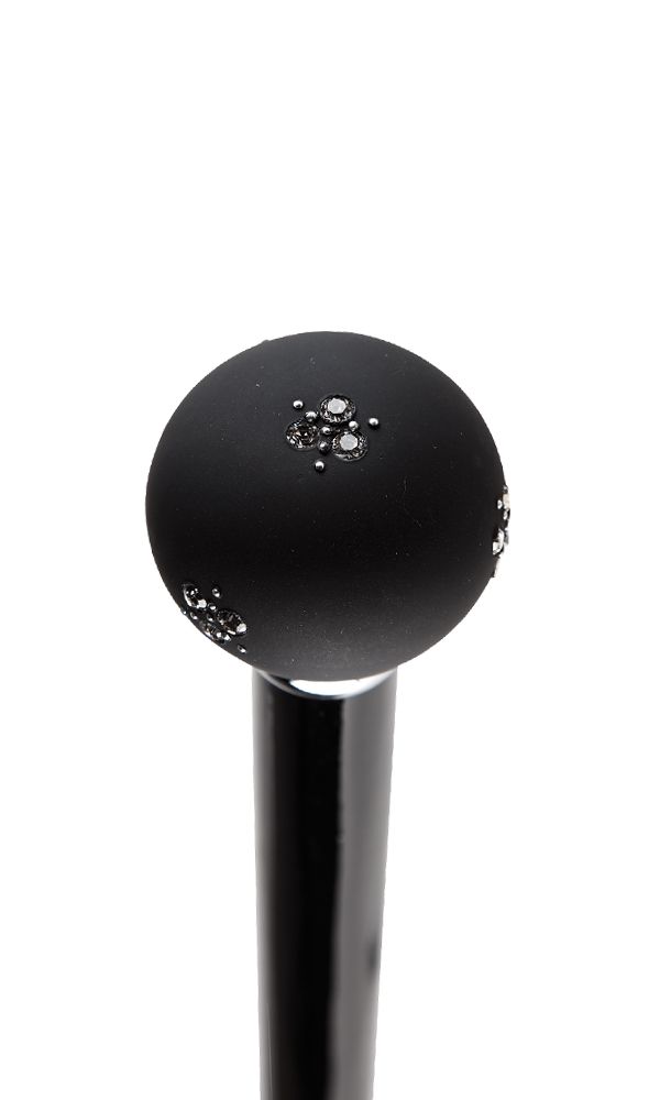 Diamante soft touch handle wooden walking stick with decorative collar. This elegant stick will enhance any dress outfit. It has a black beech wood shaft and beautiful diamante decorative handle . Metal ferrule included. Height 91cm or 36".