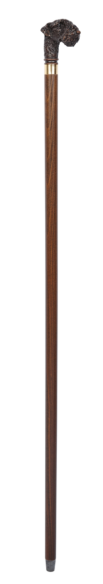 Airedale collector stick with a turned maple shaft, wood-effect resin handle, brass collar and metal ferrule.