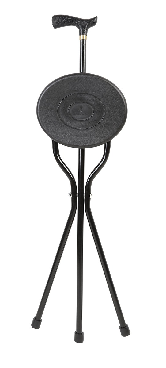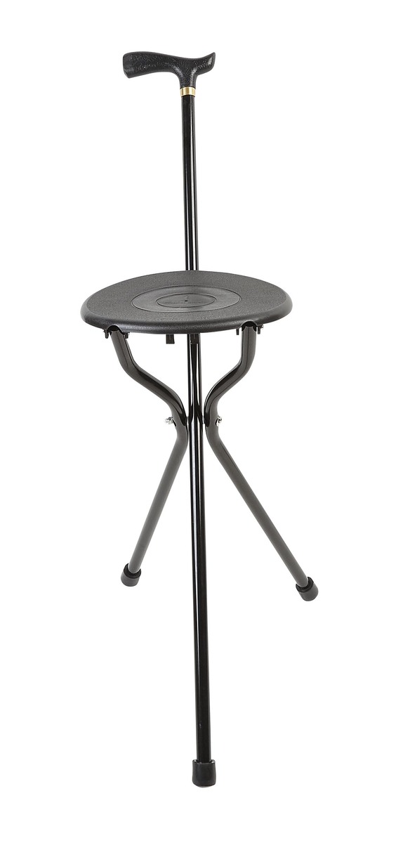 Black tripod folding seat stick. The tripod seat stick can be used to aid balance when walking and provide a seat when you need to take the weight off your feet. It is ideal for picnics, fishing and many other outdoor activities.