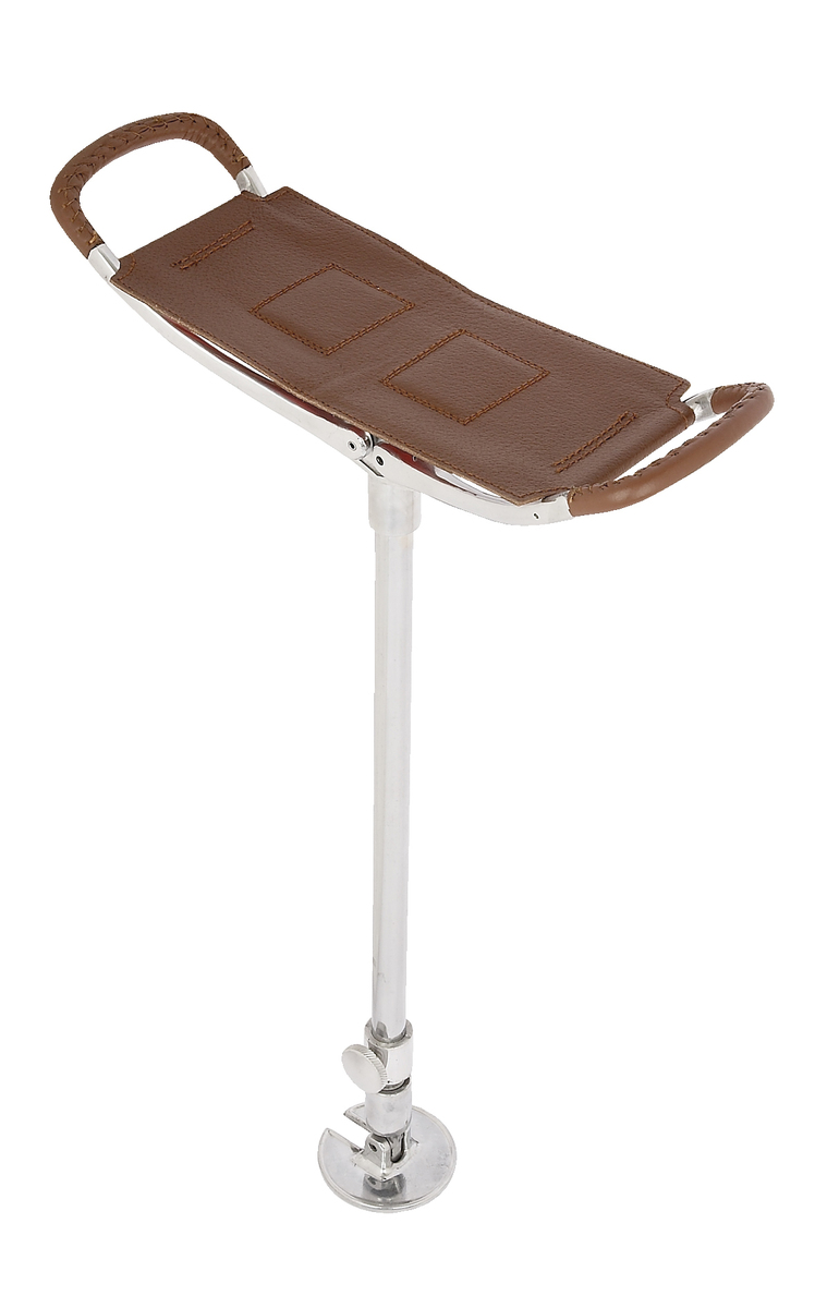 Tan leather adjustable shooting stick with Royal Stewart tartan insert. The traditional shooting seat sticks are very popular for outdoor events. This leather seat stick has been finished with Royal Stewart tartan, adding a touch of style.