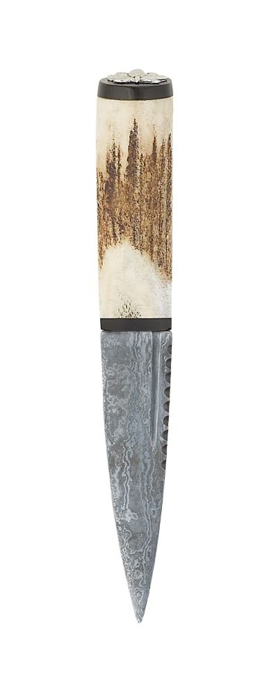 Staghorn Damascus Sgian Dubh with Thistle & Black Sheath