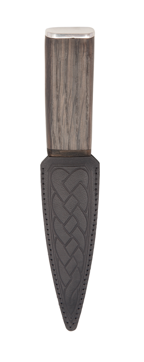 Bog Oak Arisaig Daywear Sgian Dubh with Polished Pewter Cap for Engraving and Leather Sheath.
