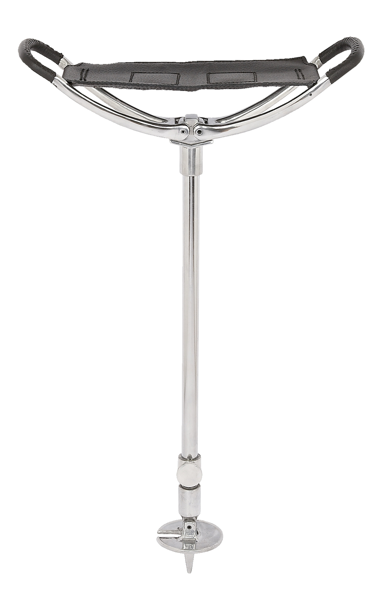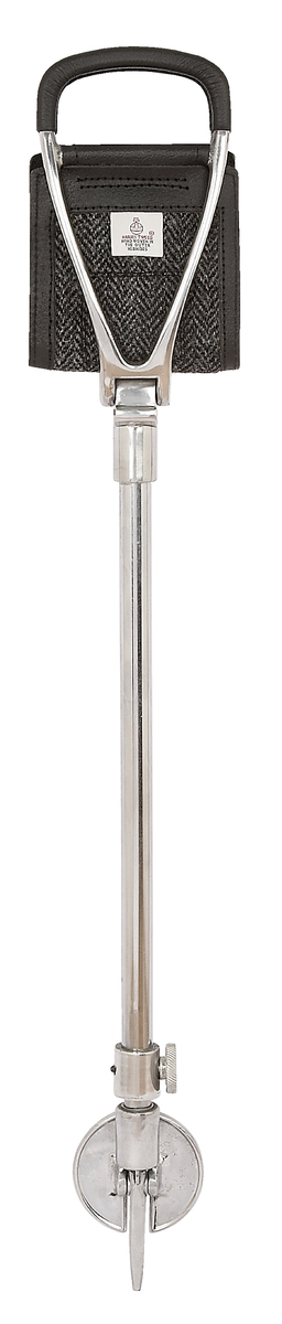 Black leather adjustable shooting stick with grey Harris tweed insert. The traditional shooting seat sticks are very popular for outdoor events. This leather seat stick has been finished with Harris tweed, adding a touch of style.