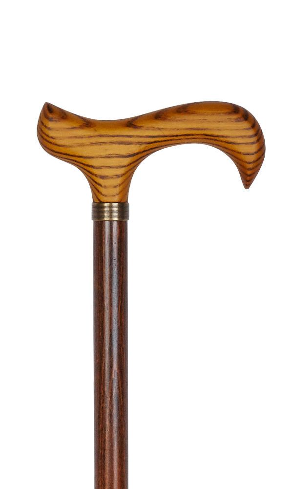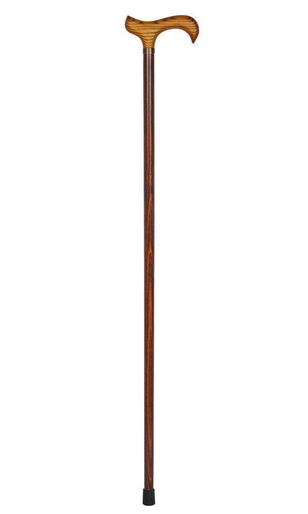 Beech wood walking stick with derby handle and decorative collar. This stick has a natural beech handle and stained brown shaft. Rubber ferrule included. Height 91cm or 36".