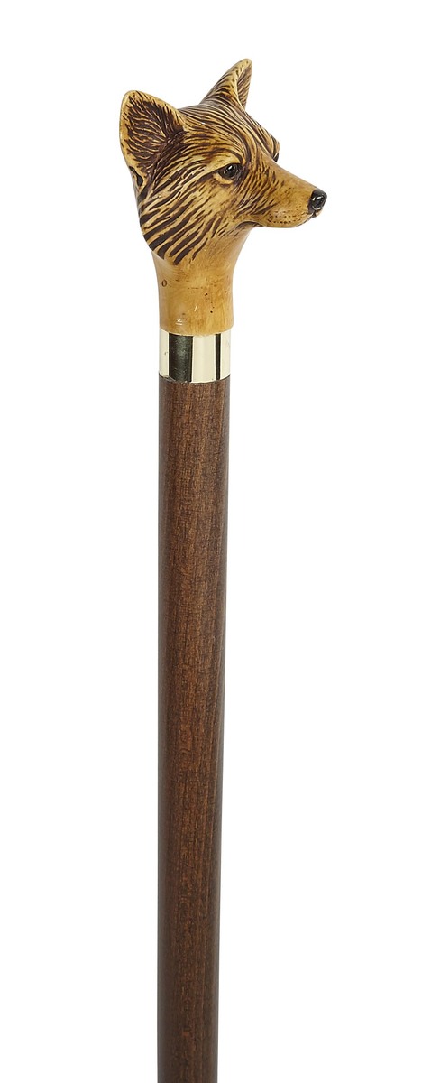 Fox collector stick with a turned maple shaft, resin handle, brass collar and metal ferrule.