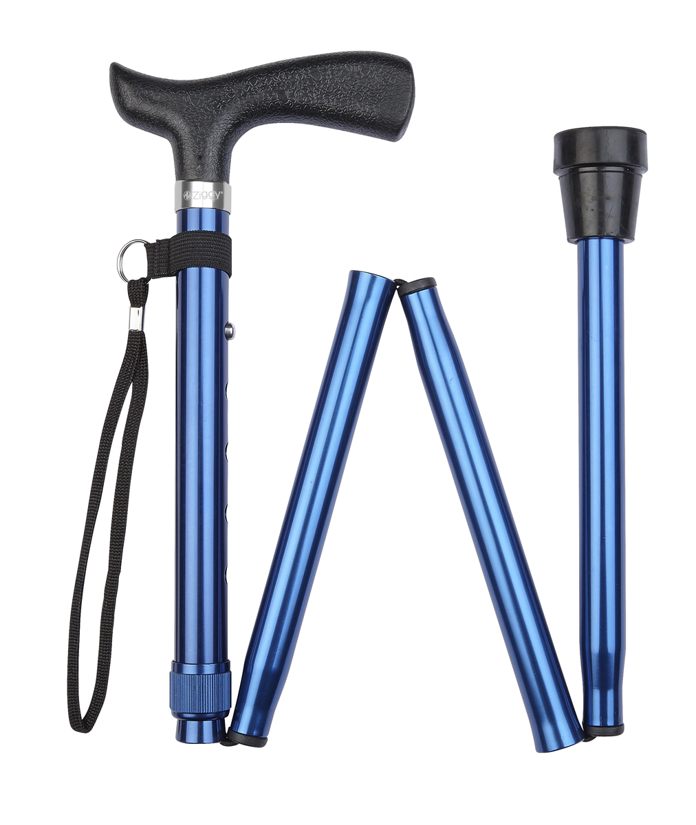 Fashionable, functional and foldable. This strong and convenient height adjustable folding walking stick folds into 4 sections and simply adjusts to the correct height.