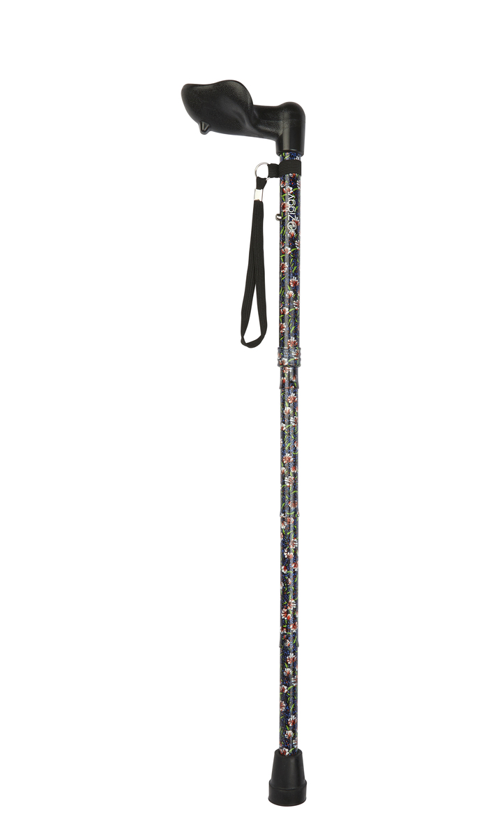 Fashionable, functional and foldable. This strong and convenient height adjustable folding walking stick folds into 4 sections and simply adjusts to the correct height.