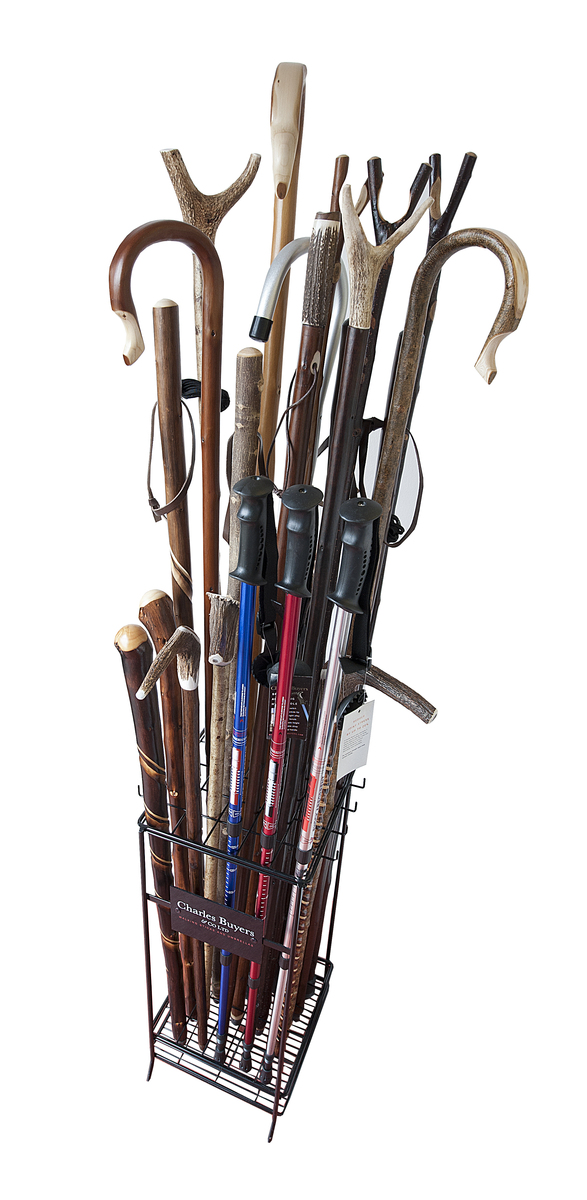 Suitable for walking sticks and umbrellas. Holds 25 walking sticks and 8 folding sticks on hooks.