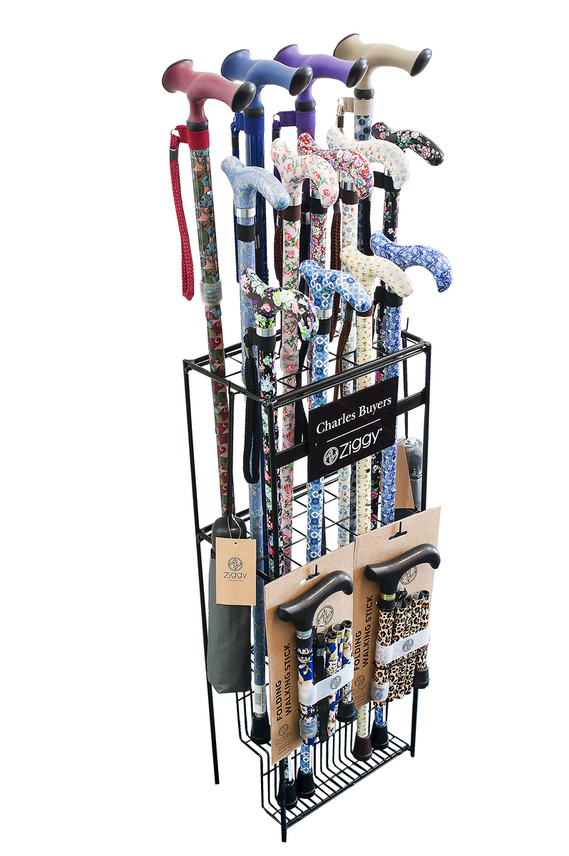 Holds 15 walking sticks or umbrellas and 4 hooks for folding sticks.