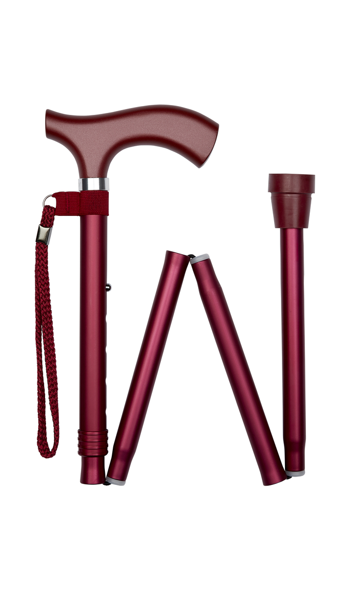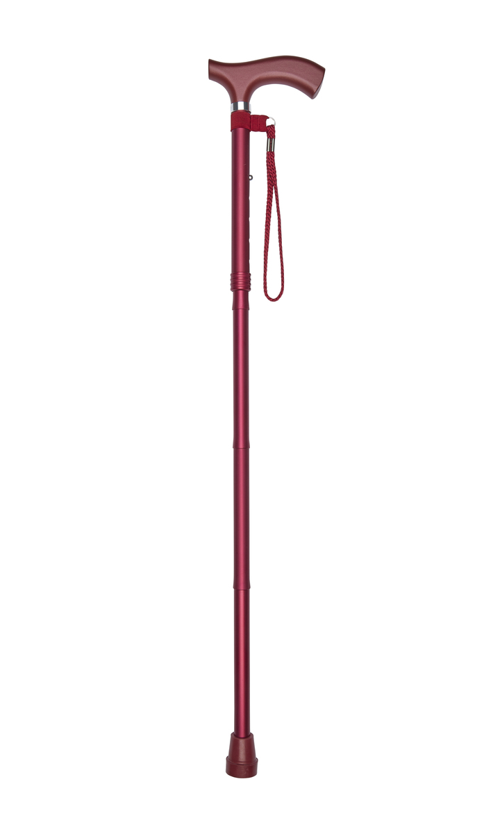 Fashionable, functional and foldable. This strong and convenient height adjustable folding walking stick folds into 4 sections and simply adjusts to the correct height.