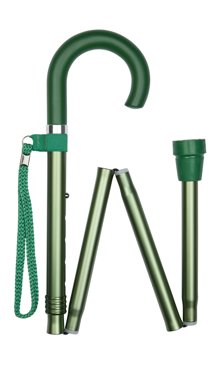 Fashionable, functional and foldable. This strong and convenient height adjustable folding walking stick folds into 4 sections and simply adjusts to the correct height.