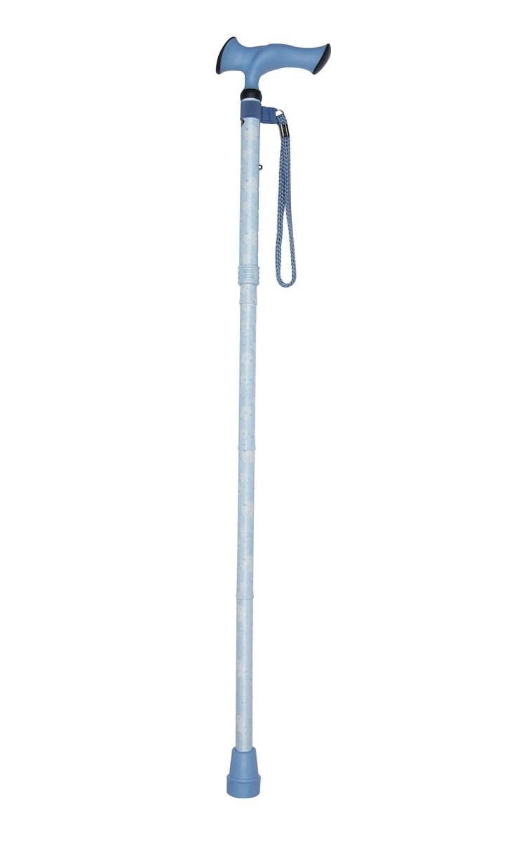 Fashionable, functional and foldable. This strong and convenient height adjustable folding walking stick folds into 4 sections and simply adjusts to the correct height.