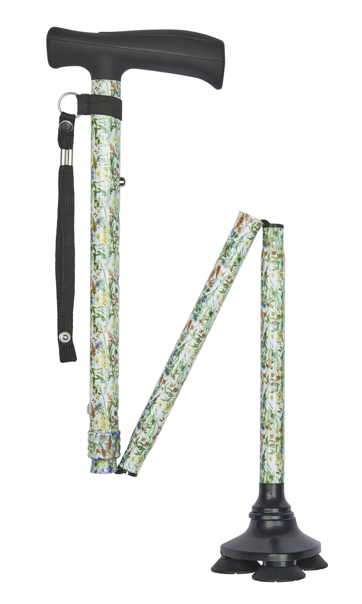 The Tribase has three rubber feet for extra grip which allows it to stand on its own. Strong and lightweight height-adjustable aluminium walking stick, that folds into 3 sections for convenience.