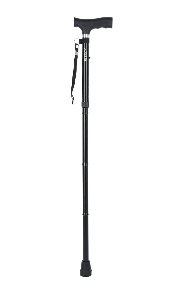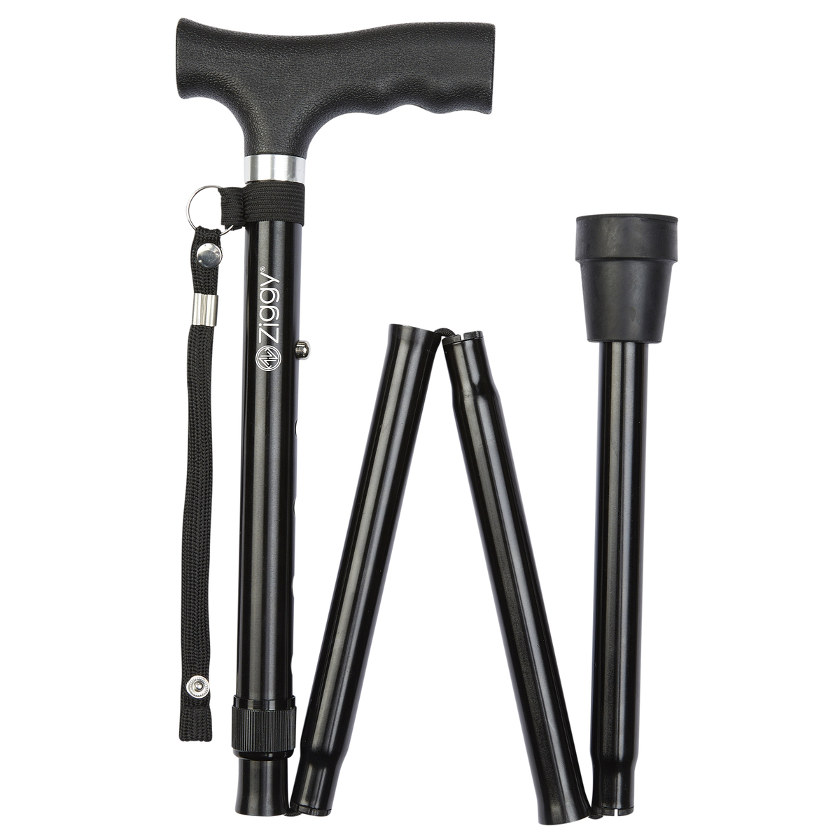 Fashionable, functional and foldable. This strong and convenient height adjustable folding walking stick folds into 4 sections and simply adjusts to the correct height.