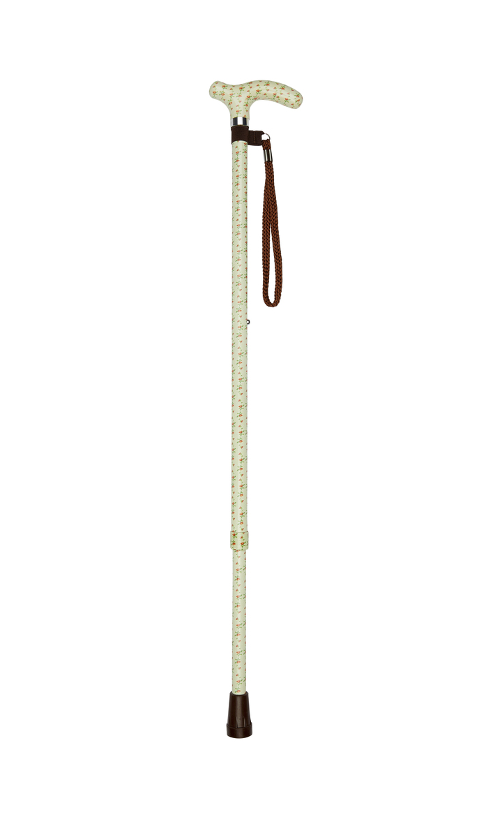 Red Flowers Pattern Adjustable Stick With Petite Patterned Handle