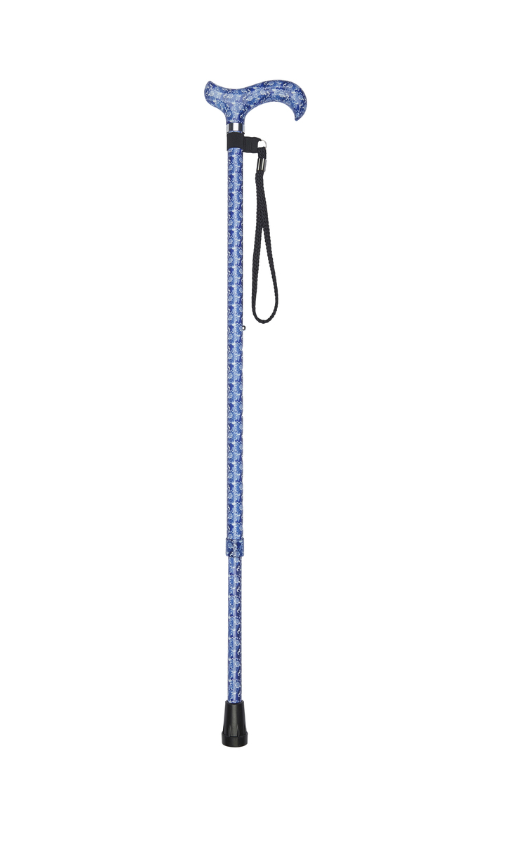 Blue Floral Pattern Adjustable Stick With Patterned Handle