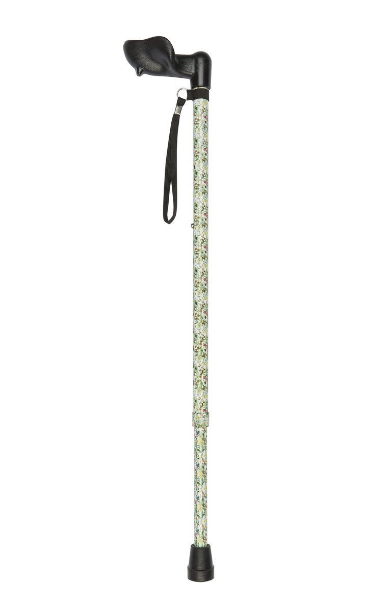 Wild Flowers Pattern Adjustable Stick With Anatomical Handle (Left Hand)